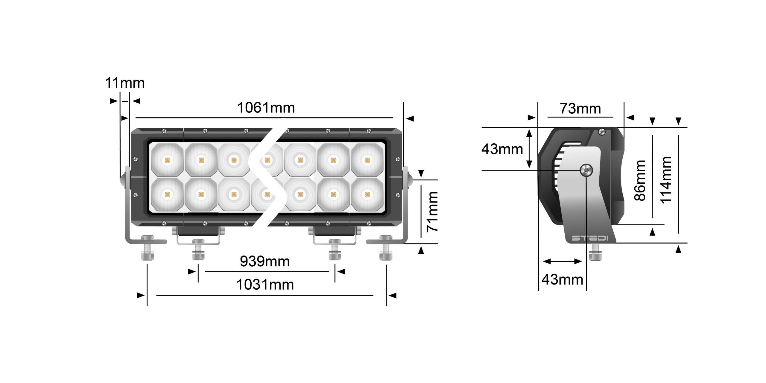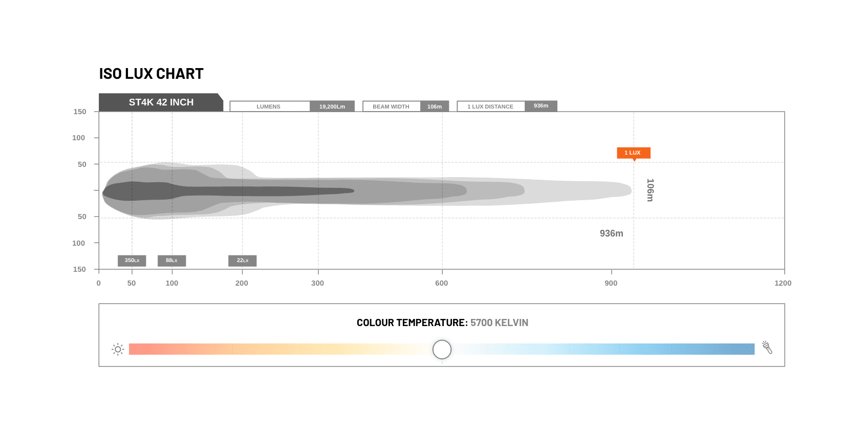 The ST4K 42 Inch LED Light Bar brings together the strengths of both spot and flood reflector distributions, to provide an amazing 936m delivery, with 55m on each side of the vehicle with the flood beam.