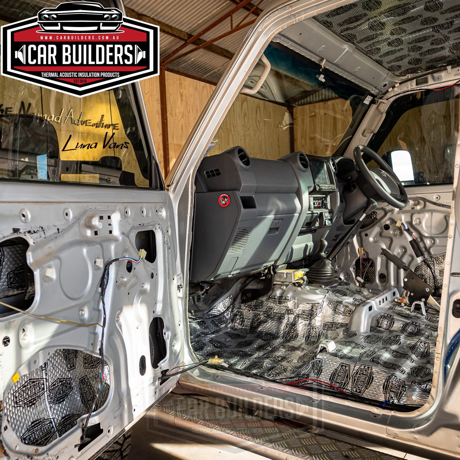 Control sound and heat in your truck ready for touring. This pack contains enough insulation to cover 4×4 wagons such as Nissan Patrols and Toyota Land Cruisers