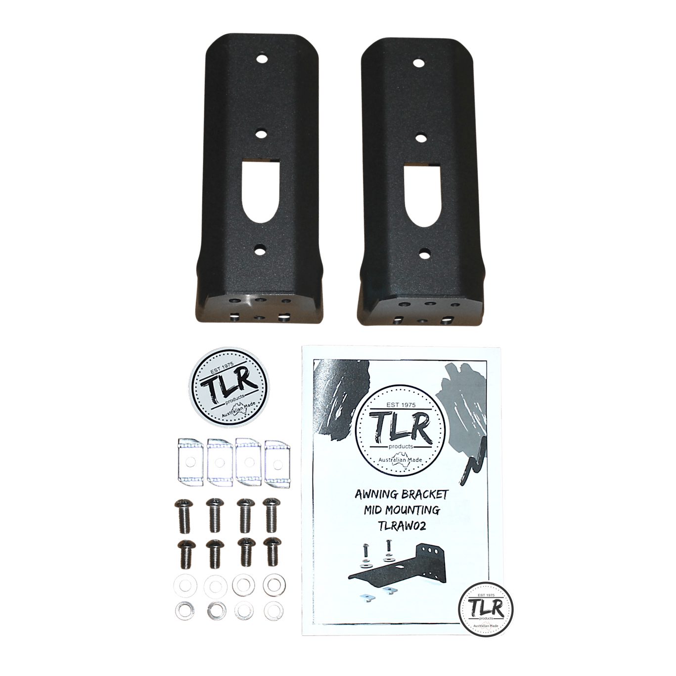There is not much thought gone into most awning brackets on the market, just a simple bracket to get the awning on the side of your car, but they often end up a lot higher than need be which means you have trouble in car parks and your garage and many brackets allow excess vibration on the awning which results in rivets and bolts constantly coming loose causing failure of the awning itself. We have come up with a neat fabricated solution with folded side to reduce flex and have three options to get the awning at the right height to allow it to be mounted as low as possible yet still allow your doors to be opened and not foul on the awning. We recommend you measure up the mounting holes on your awning and use the diagram in the gallery to select one of the 3 options that best suits your situation. You need at least two of these brackets, if you have a heavy awning or lightweight roof-racks then three can be a good idea to spread the load