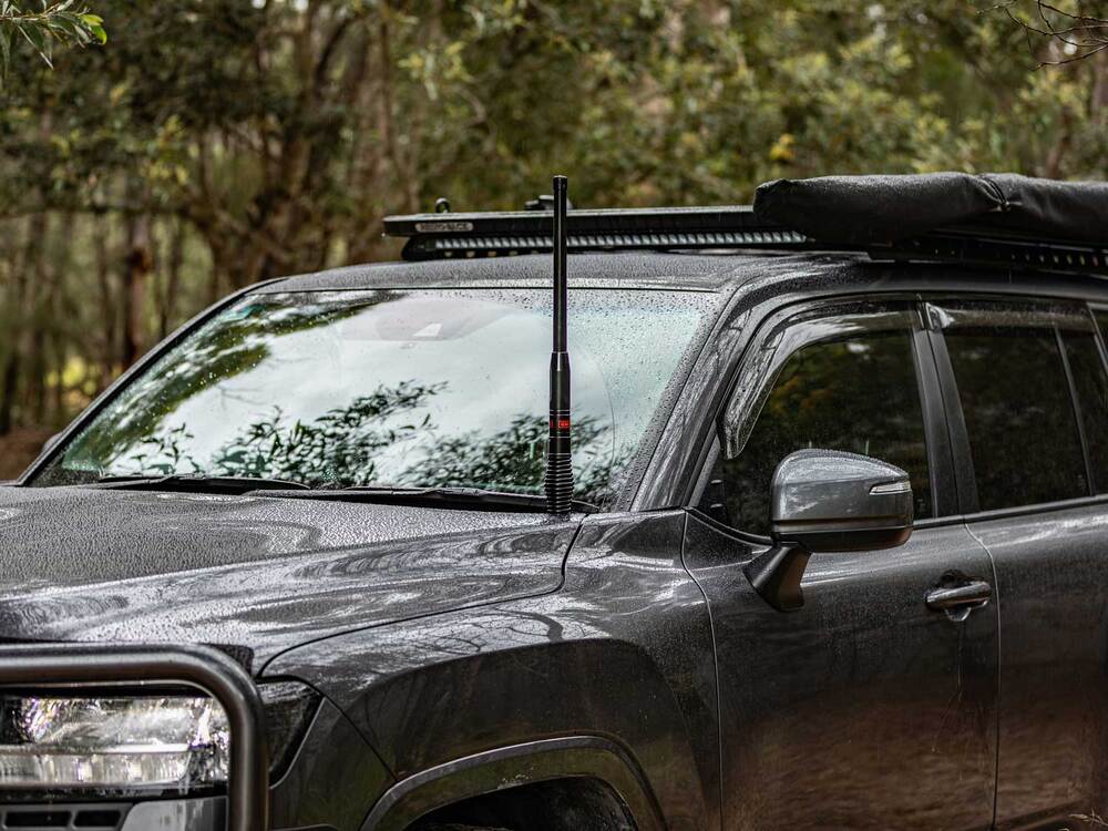 - Mounts your aerial or antenna directly under the bonnet hinge on the Passenger side (RHD / Australian Vehicles).