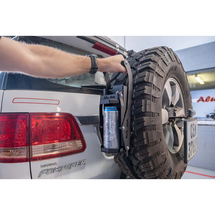 The Alu-Cab spare wheel can crusher mount makes the mounting of your Alu-Cab can crusher an easy DIY solution. It opens up the opportunity to mount to many vehicle applications.