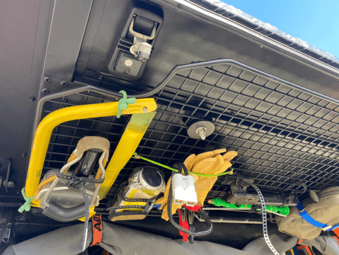 The Canopy Camper Side Door Grid is designed to fit on the inside of the Canopy Camper side doors. This easy install will allow you to mount your selected overland gear to the grid inside the cupboard making your gear easily accessible.