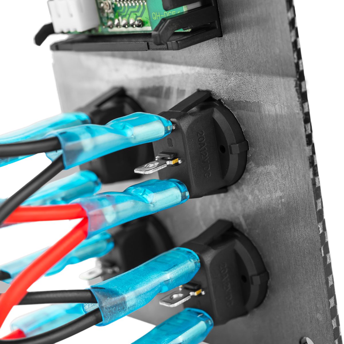• 4 x Dime Switches with Blue LED indicator (Rated at 20A Each)