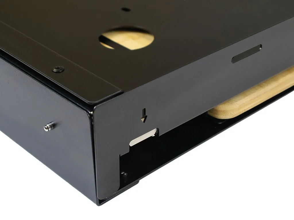 - High-strength bearing drawer slides allow the tray to extend nearly 100% from the anchored base.