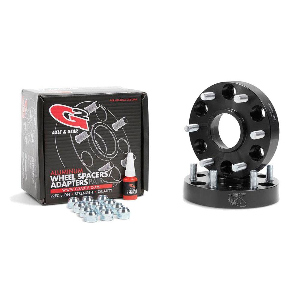 G2 is proud to introduce wheel spacers and adapters for those looking to increase the track width or run wider tires for more stability when off-roading. These precision made spacers are offered in thicknesses from 1.25” – 1.50” and feature a black anodized finish. They are constructed from heat treated 6061-T-6 aluminum include pre-installed studs, lug nuts and thread locker for easy installation. For off-road use only.