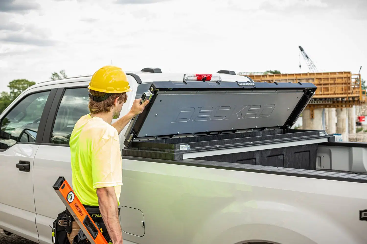 The DECKED Tool Box is constructed using injection molded, high-impact resin with galvanized steel and aluminum reinforcement. Robust steel armored locking mechanism combined with driver side lock makes forced entry nearly impossible. Comes with (2) keys.