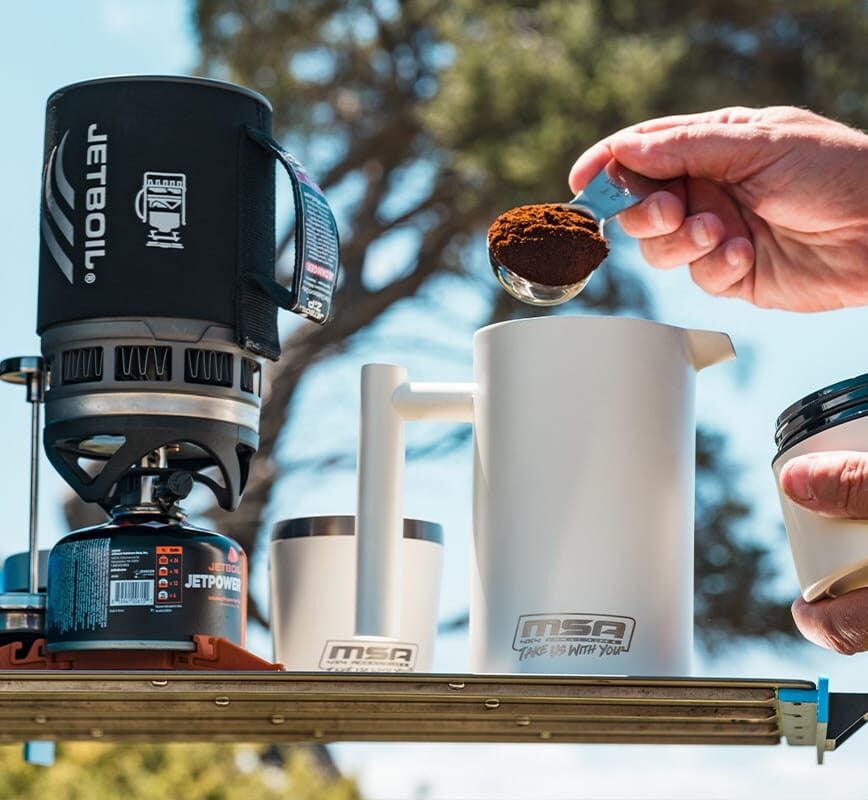 Making a perfect plunger coffee with the MSA 4X4 Deluxe Coffee Kit is a straightforward process that can deliver rich and flavourful coffee event when you’re off the beaten path. Follow these steps for a delicious brew.