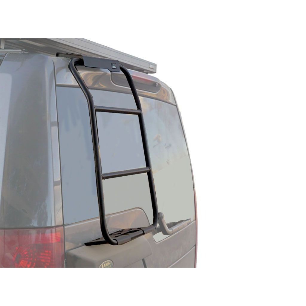 A ladder that clips over the top of the Discovery 3 & 4?s / LR3, LR4’s rear door, and bolts behind the license plate.