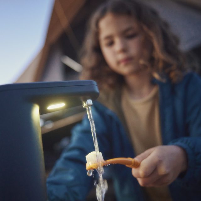Running Water on The GoYou probably take your kitchen faucet for granted when you’re home but having one available when you’re on the go is a game-changer. The Hydration Water Faucet is designed to make water dispersing a snap, letting you pour out just what you need and not a drop more. At the campsite, you can choose just enough to wet your toothbrush or fill a cooking pot with the touch of a button, with no waste. After your first trip, you’ll wonder how you ever lived without it.