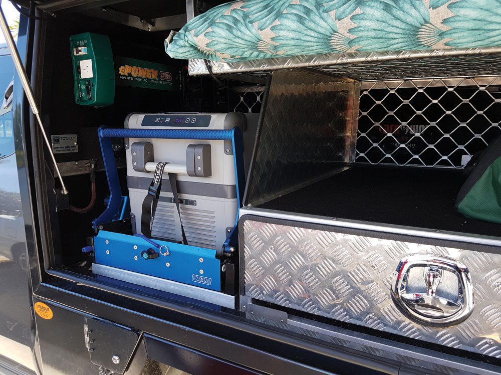 - Designed to swing smoothly out further past the vehicle tailgate, providing easy and convenient access to the contents of your fridge from its complete front and side.