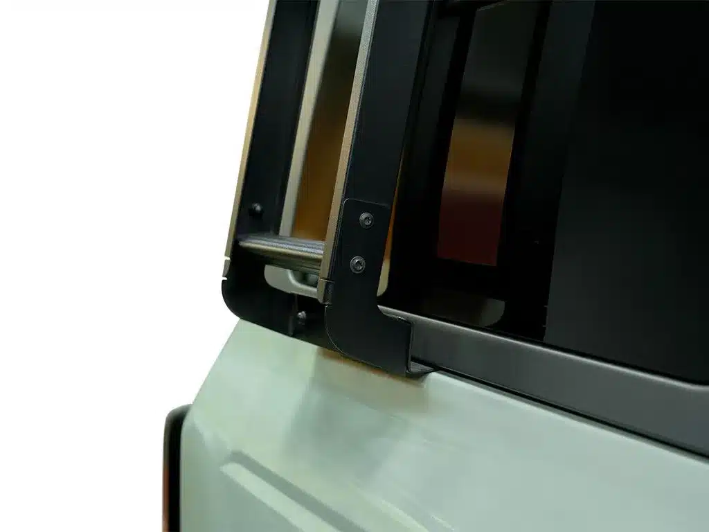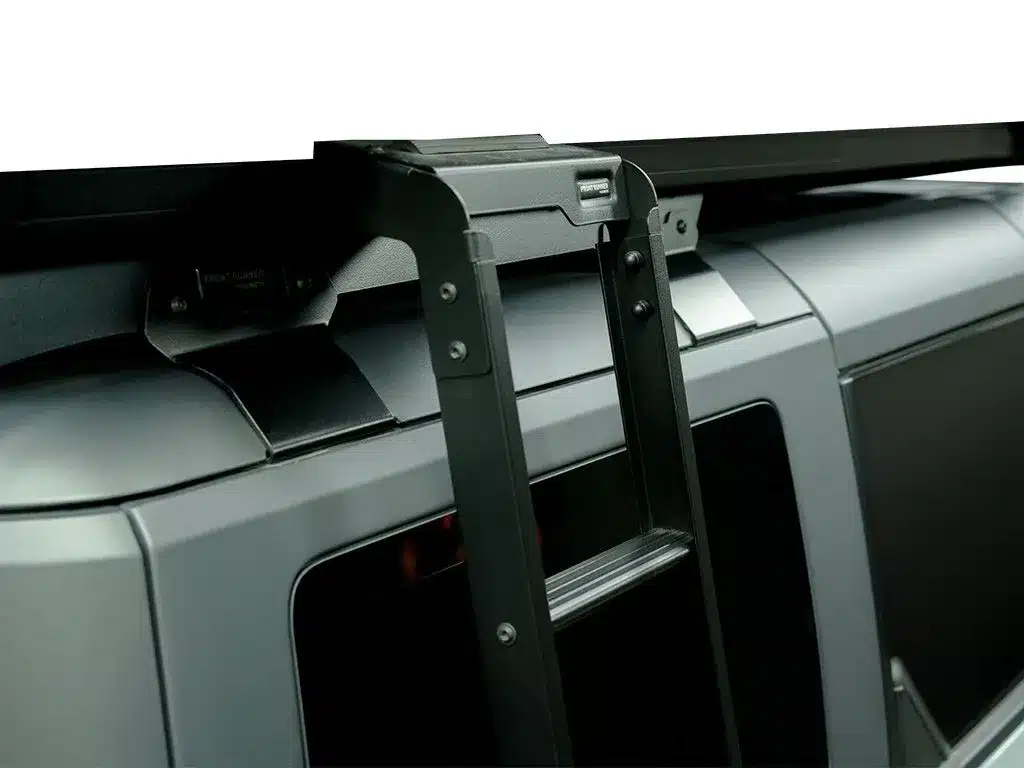 - This ladder installs into the side profile channel of your Slimline II roof rack and is secured to the body of Ford Bronco between the fiberglass roof and the vehicle’s body.