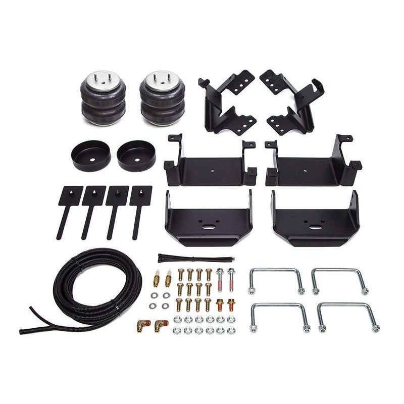 Airbag kit includes two airbags, vehicle specific airbag mounts, fasteners, air fittings, air line tubing and two inflation valves, full instructions included.