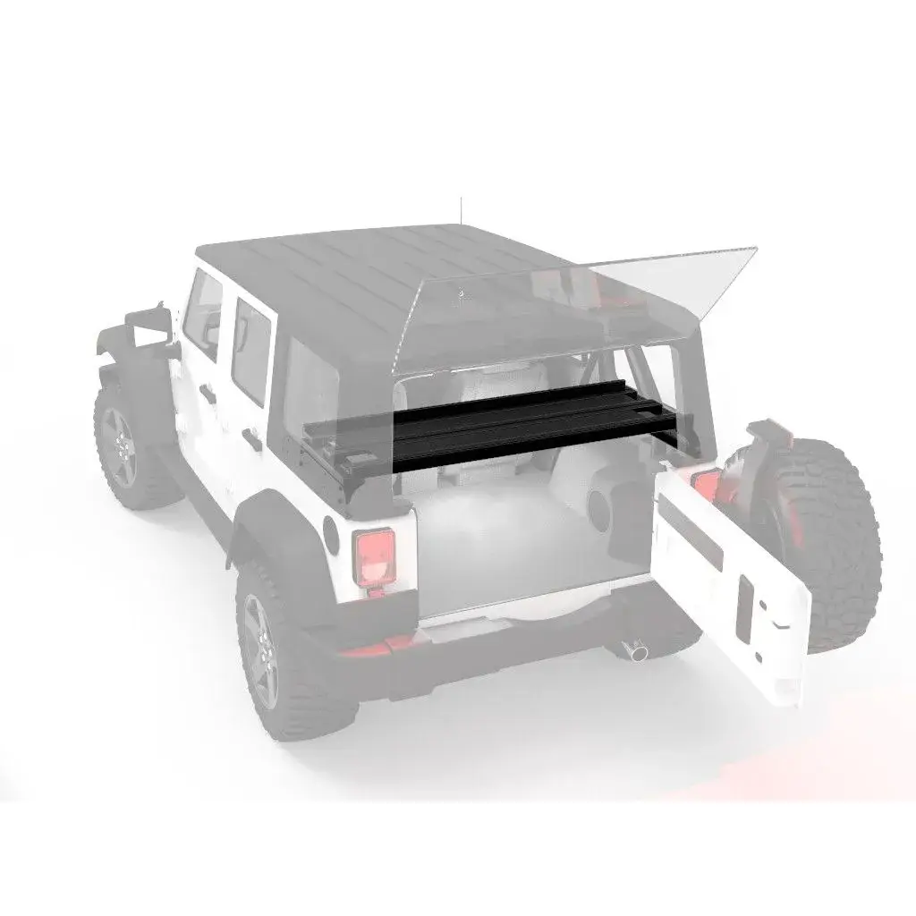 - This is the only interior jeep storage rack available that is designed to fit a standard sized vehicle refrigerator underneath. (For easy fridge access, see our Front Runner Fridge Slides, or our brand new Front Runner JKU Cargo Slide.)