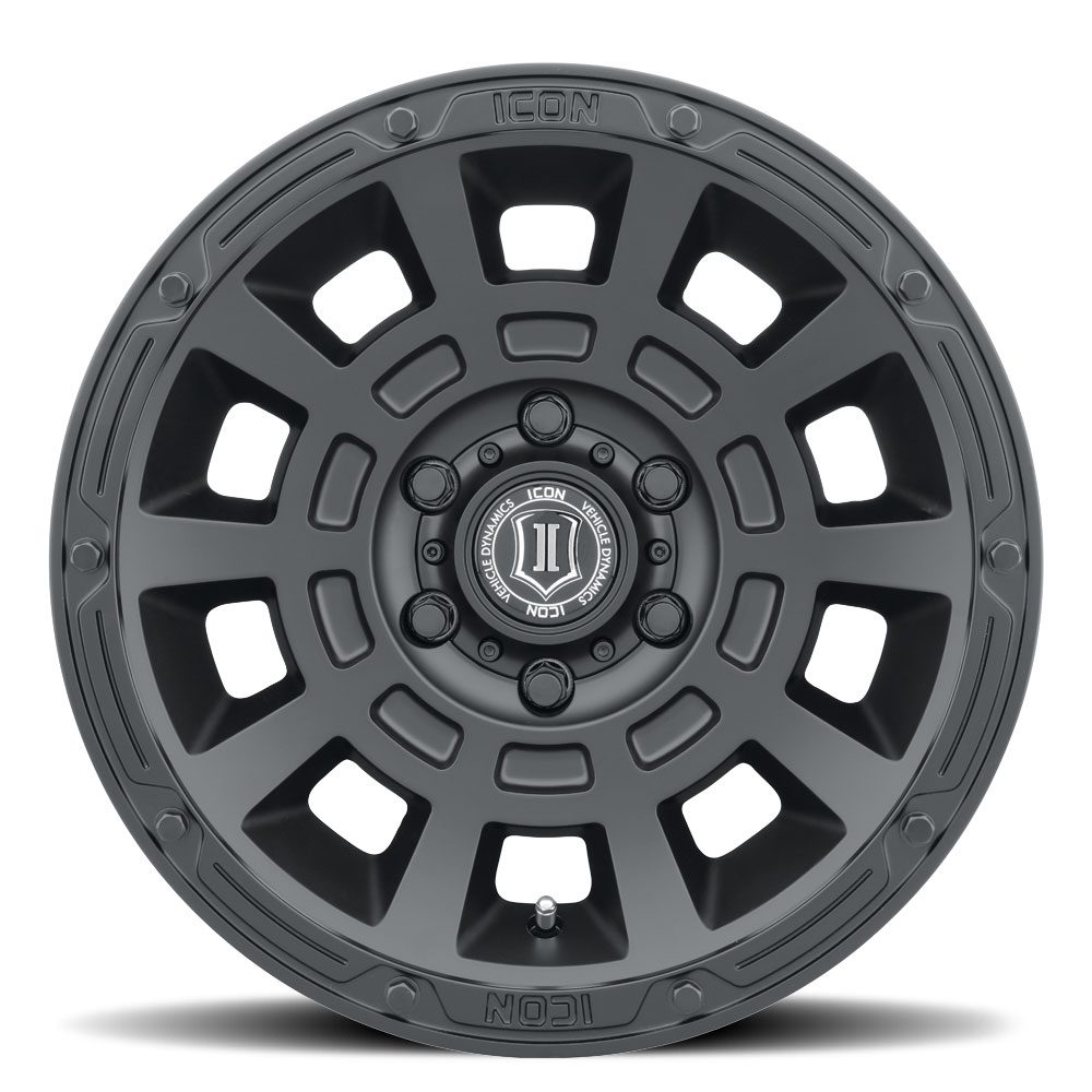 Combining sharp concave lines, a unique lip design with imprinted logos, and “ICON-optimized” dimensions, the ‘Thrust’ wheel is not only designed to improve the looks of your Jeep, truck, or SUV, but the overall function of the vehicle as well. Available in all-new Smoked Satin Black and our classic Satin Black finishes, the Thrust has a style that is anything but ordinary.
