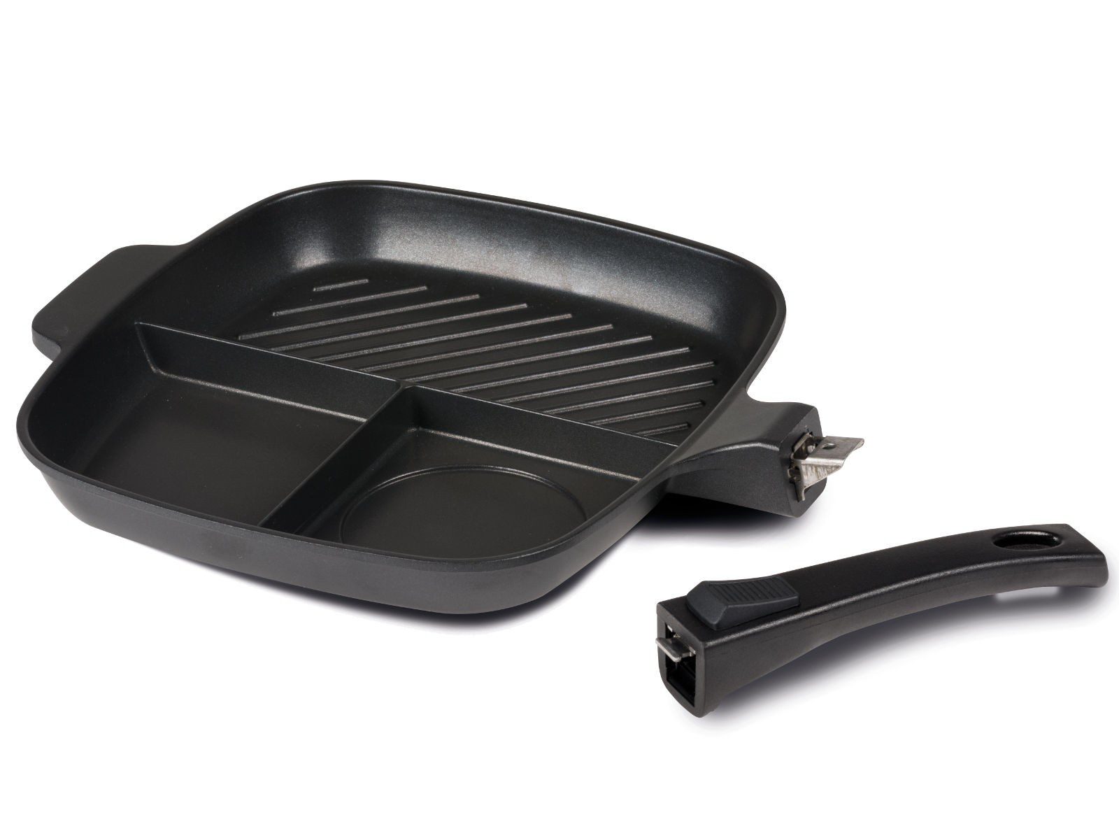 Extremely lightweight 3 section, non-stick frying pan so you can cook a complete breakfast in one pan. Ideal for single burner stoves. Constructed from strong, cast aluminium.