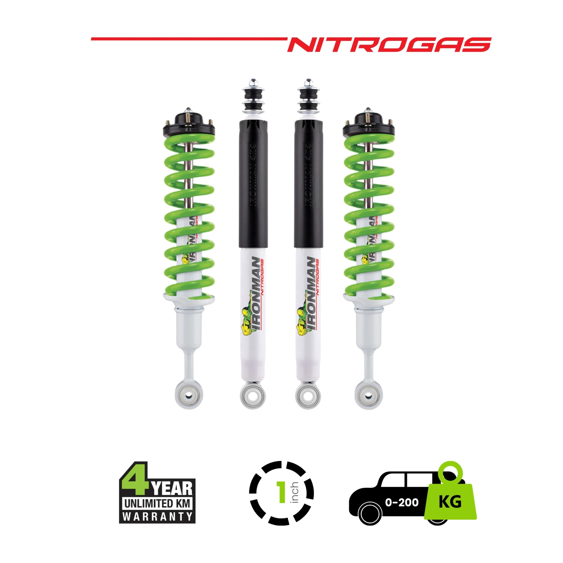 Ironman 4×4 35mm bore Nitro Gas Shocks are the rugged all round 4×4 performance shock absorber. Ironman 4x4Nitro Gas Shocks provide exceptional performance for both standard and raised height 4×4’s whilst delivering superior ride control and comfort both on and off road. Improve stability when towing or carrying a load. Each and every Ironman 4×4 shock absorber is force velocity tested before packaging to ensure all parts received are uniform and within operating specification. High quality materials such as German Fuchs High temp shock absorber fluid, Japanese NOK multilip seals are used. Strength and durability requirements are sorted by the use of re-enforced single piece eye rings and stems. Rubber shock absorber bushes are used by Ironman 4×4, this is to promote maximum flexibility and reduction in unwanted side load and NVH (Noise Vibration Harshness) transmission which often causes seal failures in other brand shock absorbers using Polyurethane.