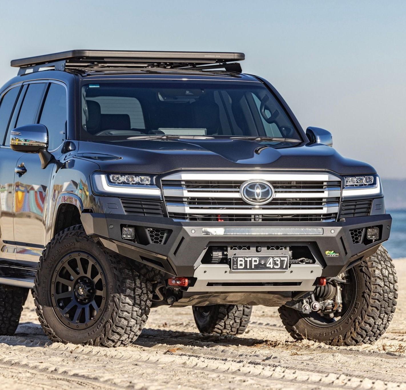 The Raid Series Front Bull Bar to suit the Toyota Landcruiser 300 Series (LC300) delivers a sleek yet powerful design, with strong steel construction and a textured powder-coated finish for durability. The integrated recovery options will get drivers out of any sticky situation, and the front airbag compatibility ensures maximum safety.