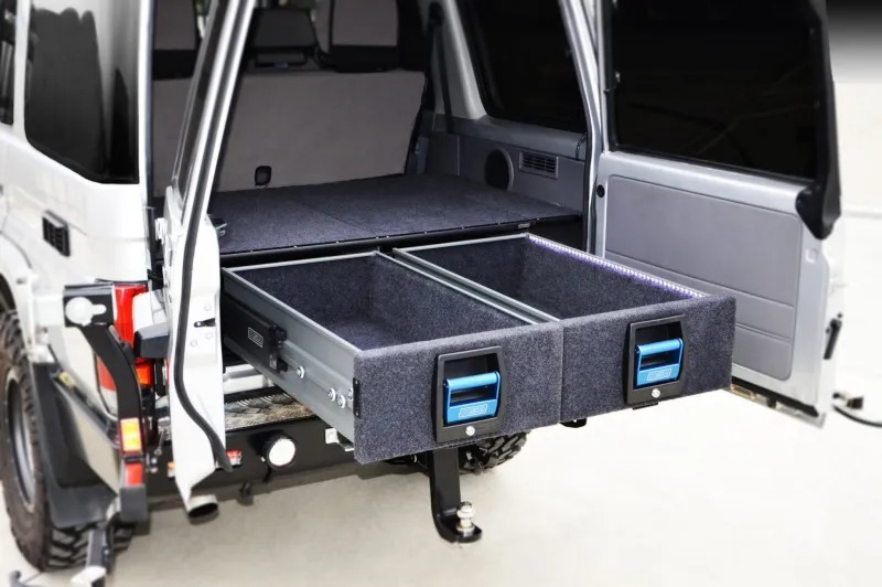 MSA 4X4’s Storage Drawer Systems are designed with a patented slide technology offering a smoother opening under heavy loads. The entire drawer extends further from the frame, allowing 100% access to the drawers. No more hard-to-reach items at the back! MSA 4X4’s Storage Drawer Systems are constructed with aluminium and have anodised aluminium components. Super-strong, lightweight and comes with stainless steel fasteners used throughout for a rust-free, corrosion resistance lifetime of use.