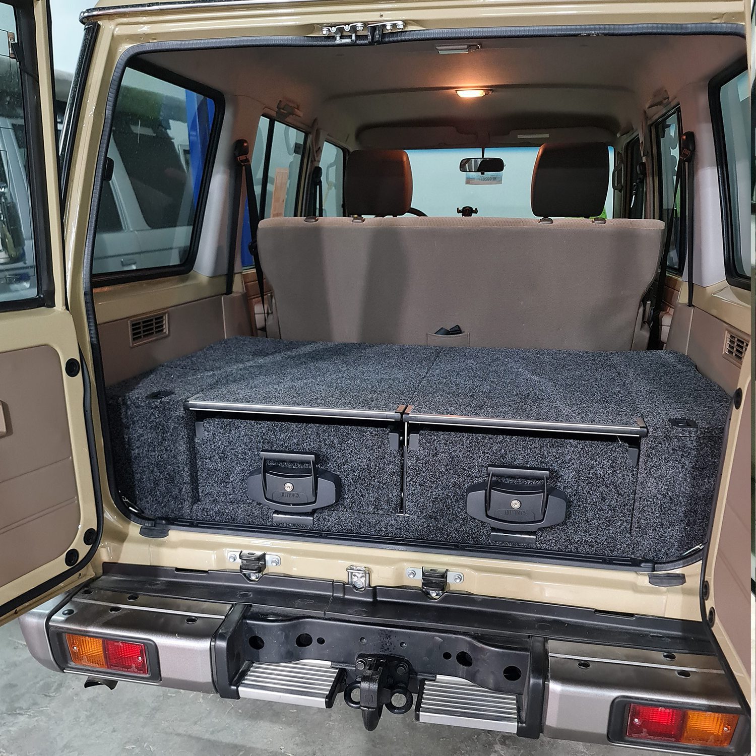 4WD Interiors first produced vehicular drawer systems in 1989. In 1990 lc76 4×4 Australia magazine featured the new drawer system in its magazine and gave it the sort of product endorsement rarely given.