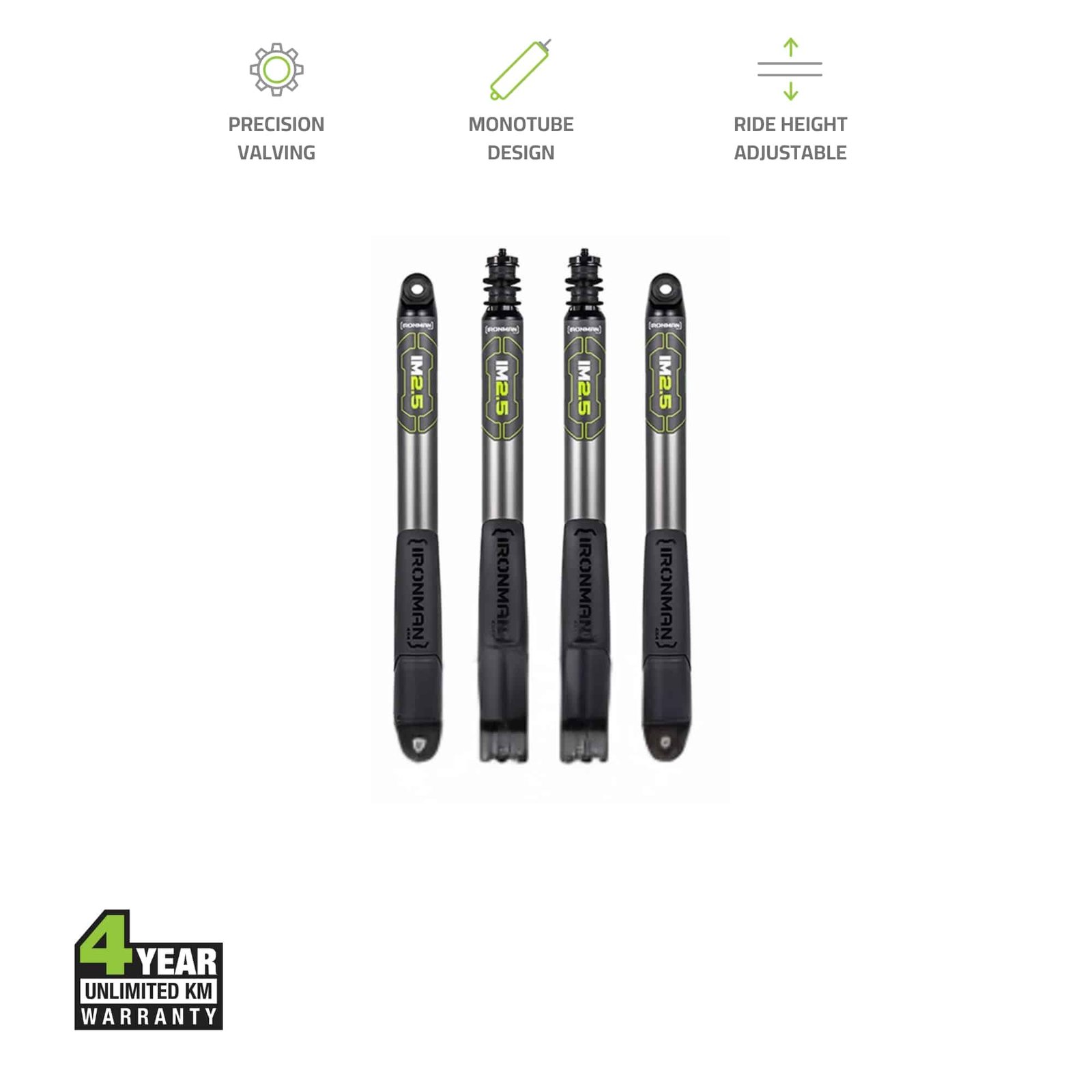 Backed by IRONMAN 4X4’s 4-year unlimited-mileage warranty, —unlikely to be needed thanks to the IM2.5’s legendary durability, but there just in case the unexpected finds you.