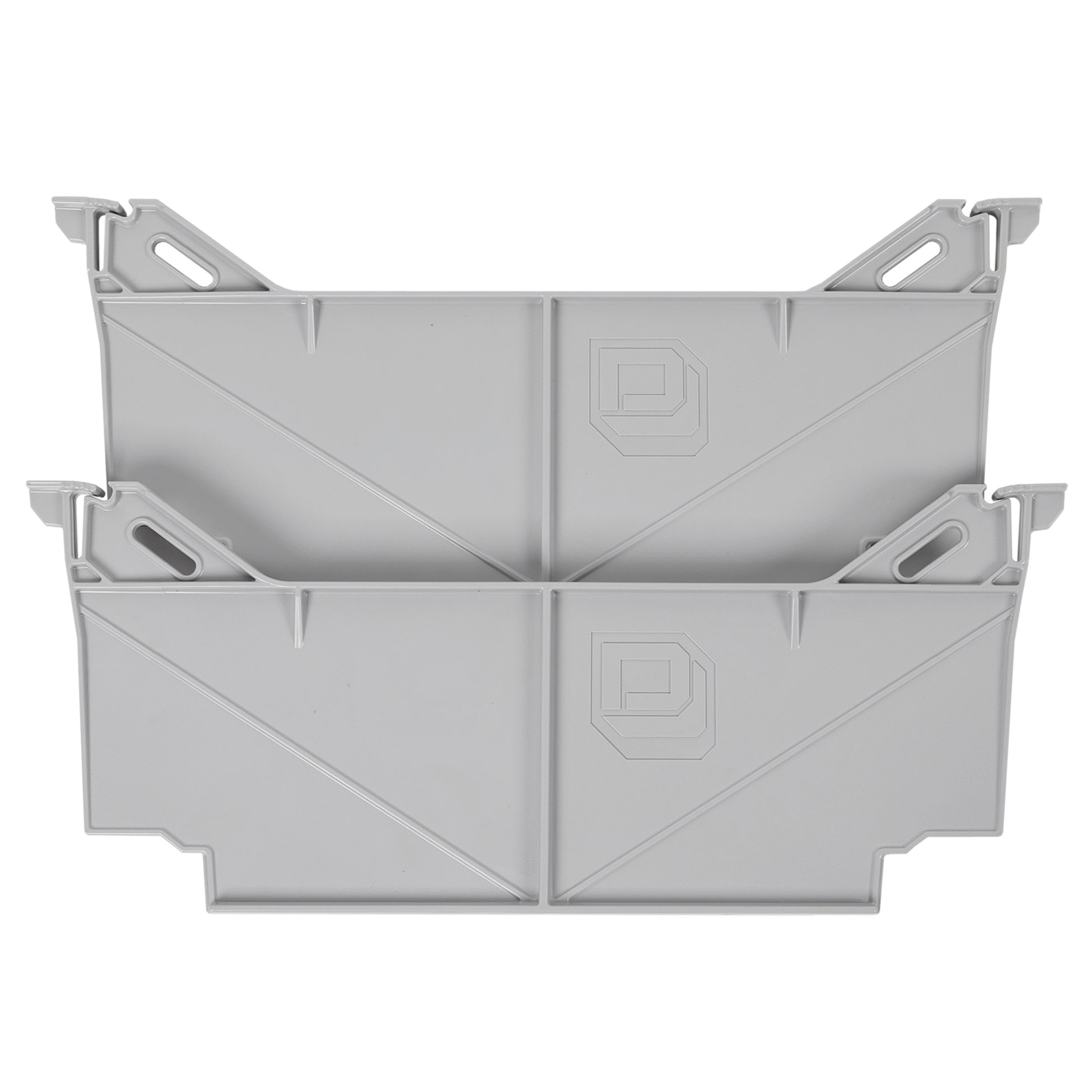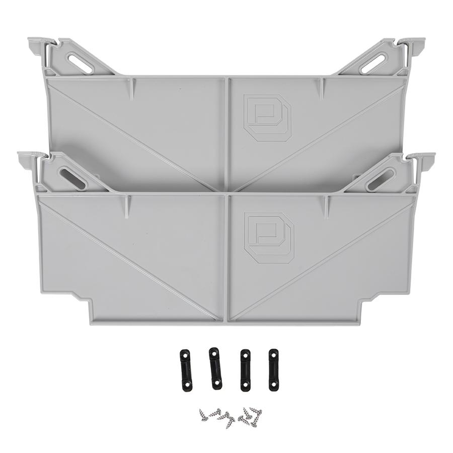 The dividers are 8″ tall and fit into mounting positions within the DECKED drawers, allowing you to customize the drawers for your gear. Each divider has cut-outs that allow you to secure your gear with handy tie-down points. Light gray in color to make finding your stuff easier. Can be taken out or re-positioned with ease. Made from polypropylene.