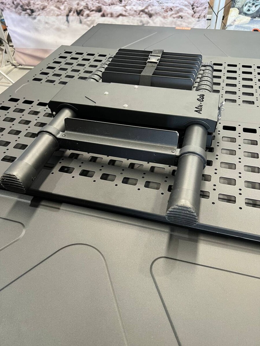 This kit allows you to safely store the ladder on the roof of your LT-50 with the Alu-Cab molle plate.