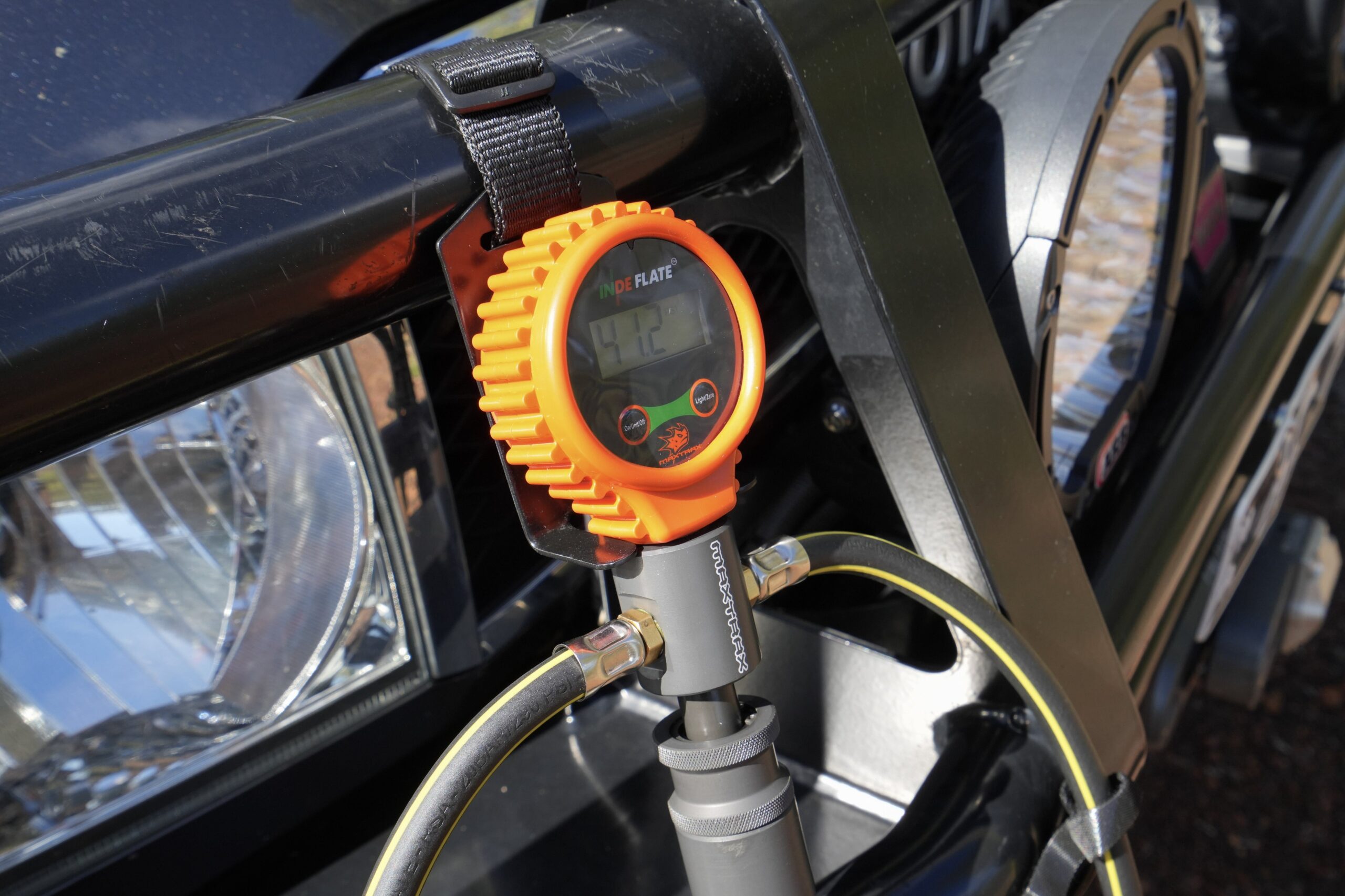 - The MAXTRAX INDEFLATE features a 700kpa (100psi) combination pressure gauge (manufactured by one of the world’s leading suppliers of high-quality pressure and temperature measurement products) so that you can monitor your tyre pressures while inflating, deflating or equalising the tyre pressures.
