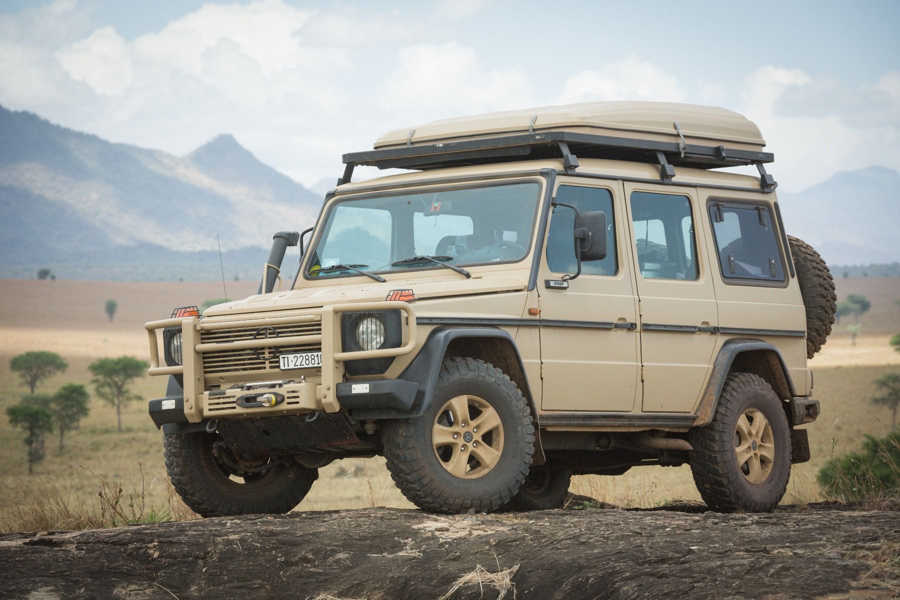 This 1964mm/77.3″ long 3/4 size Slimline II cargo carrying roof rack kit for the Mercedes Gelandewagen G Class contains Slimline II Tray and Wind Deflector, as well as 6 Gutter Mount legs for mounting the Tray to the vehicle. It installs easily with no drilling required.