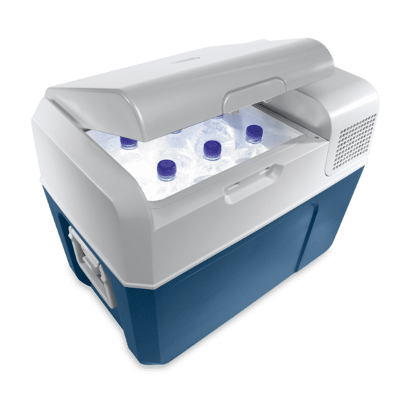 The Mobicool MCF40 has an adjustable temperature range of +20 °C to –10 °C and a rapid achievement of its target temperature. The easy to use interface and digital temperature monitor enable convenient cooling at a precise temperature. With a storage capacity of 38 l, there is sufficient room to store 1.5 l bottles stood upright. A fully hermetic, compact compressor unit delivers outstanding cooling performance while an interior LED light and detachable lid boost user convenience further. The MCF40’s compact footprint and height make the electric cooler suitable for use in tight spaces, such as a converted van, or simply for loading it into the crowded boot of your car!