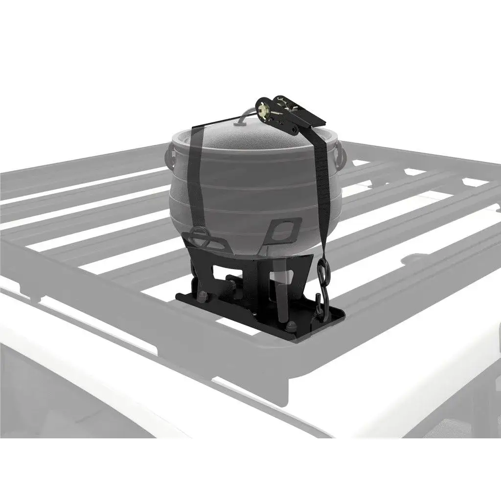 A bracket that securely carries a no.2/3 potjie pot by bolting onto your Slimline/Slimline II roof rack.