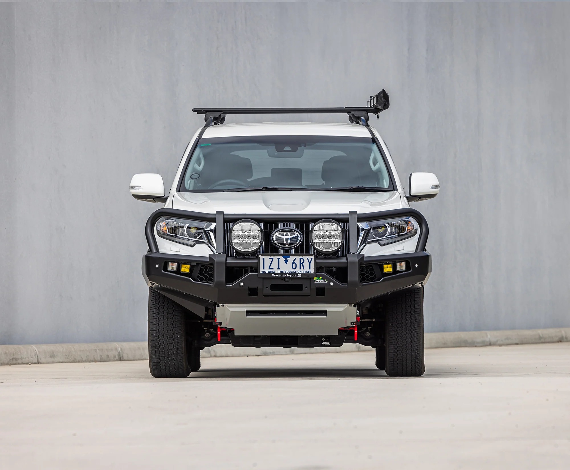 TOYOTA PRADO 150 LEXUS GX460 2018+ PREMIUM BULL BAR Designed with the ultimate in vehicle and passenger protection in mind. Upgraded with heavy duty 60.3mm upper loop tubes, these bull bars look tough, perform tough and are tough.