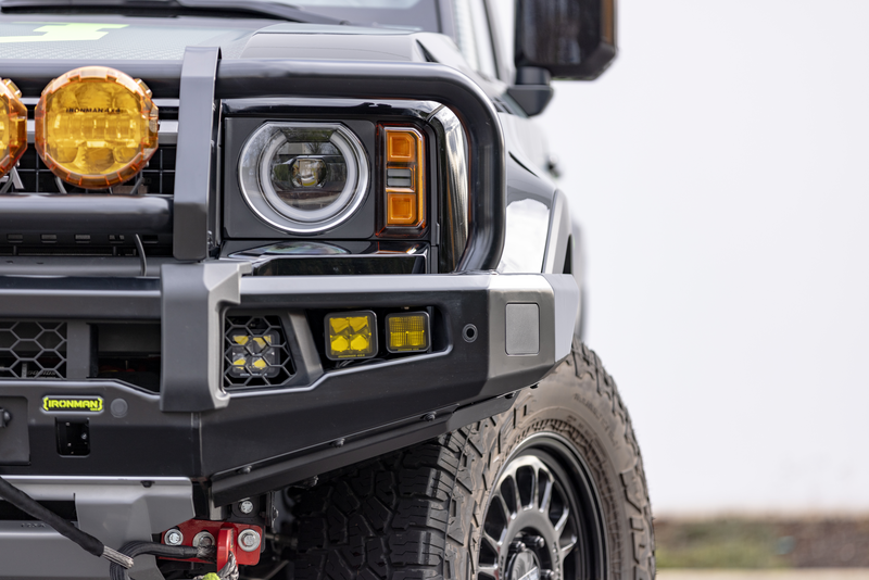 The latest in bull bar designs includes a pod for optional cube fog, driving and turn park lights, to finish off the modern look.