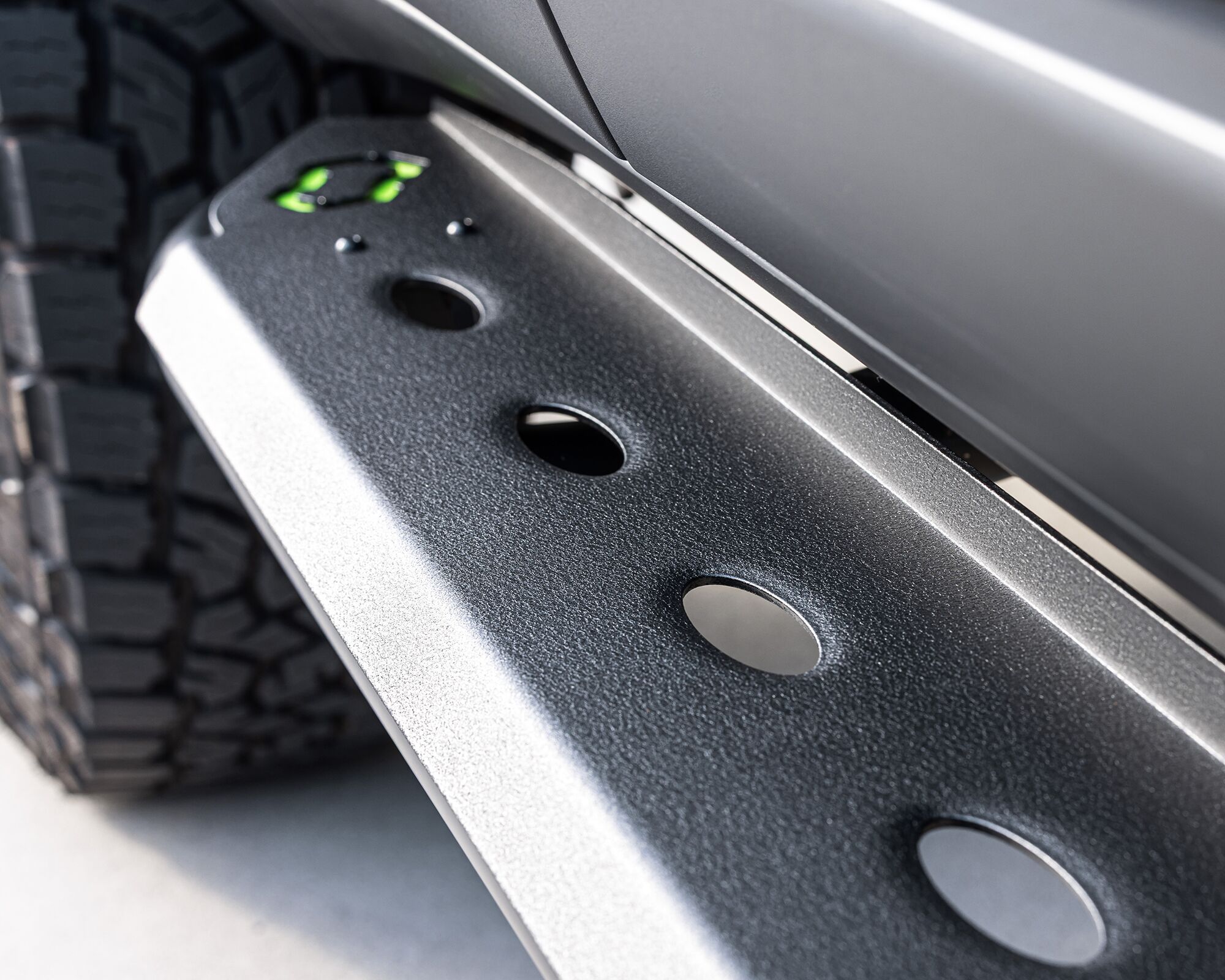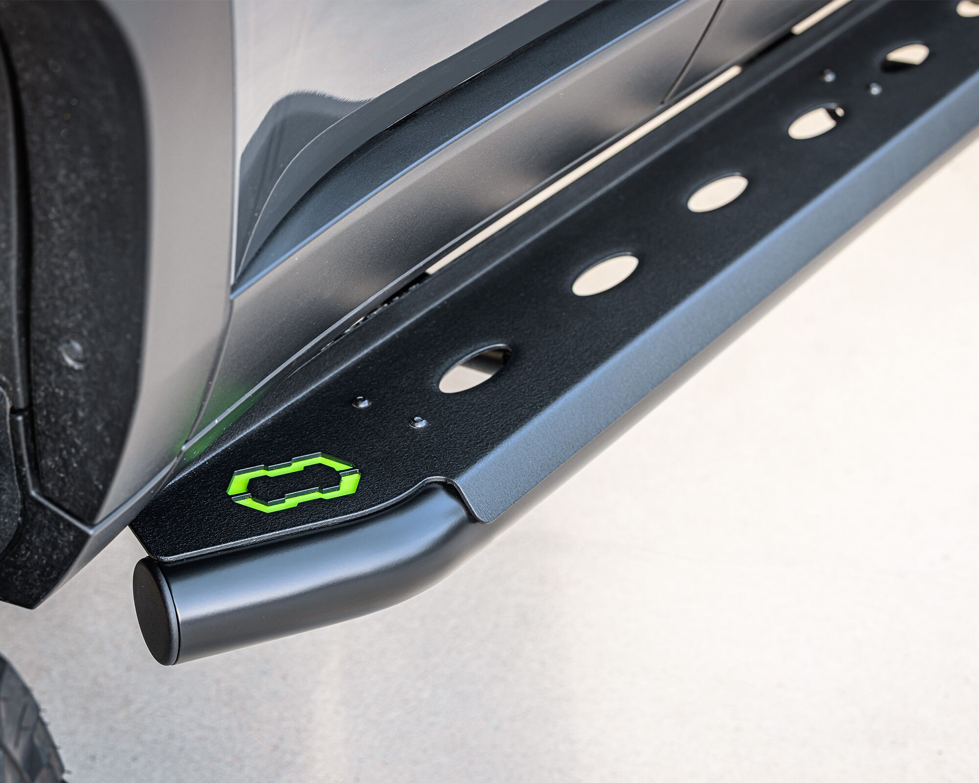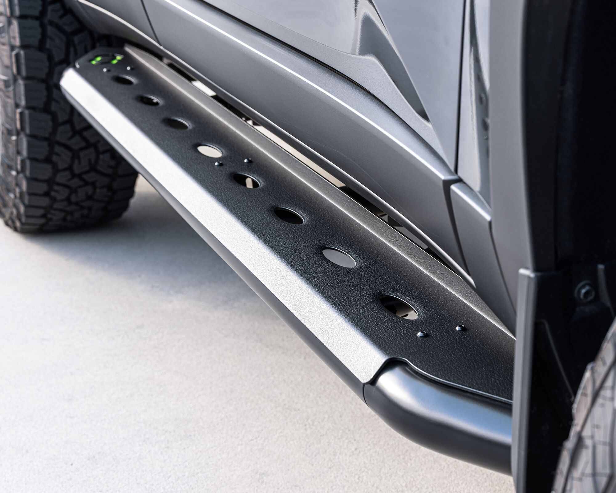 The modern, slip-resistant, and durable textured powder coat finish provides a heavy-duty aftermarket alternative to the manufacturer’s standard side steps or running boards.