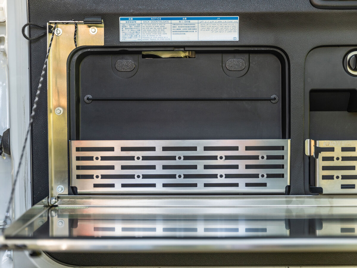 The Prado rear door cavities are great for storing little bits and pieces. Upgrading to a cage provides a solid barrier to keep everything in place, and made out of sturdy Stainless Steel you can rest assured it’ll stand the test of time.