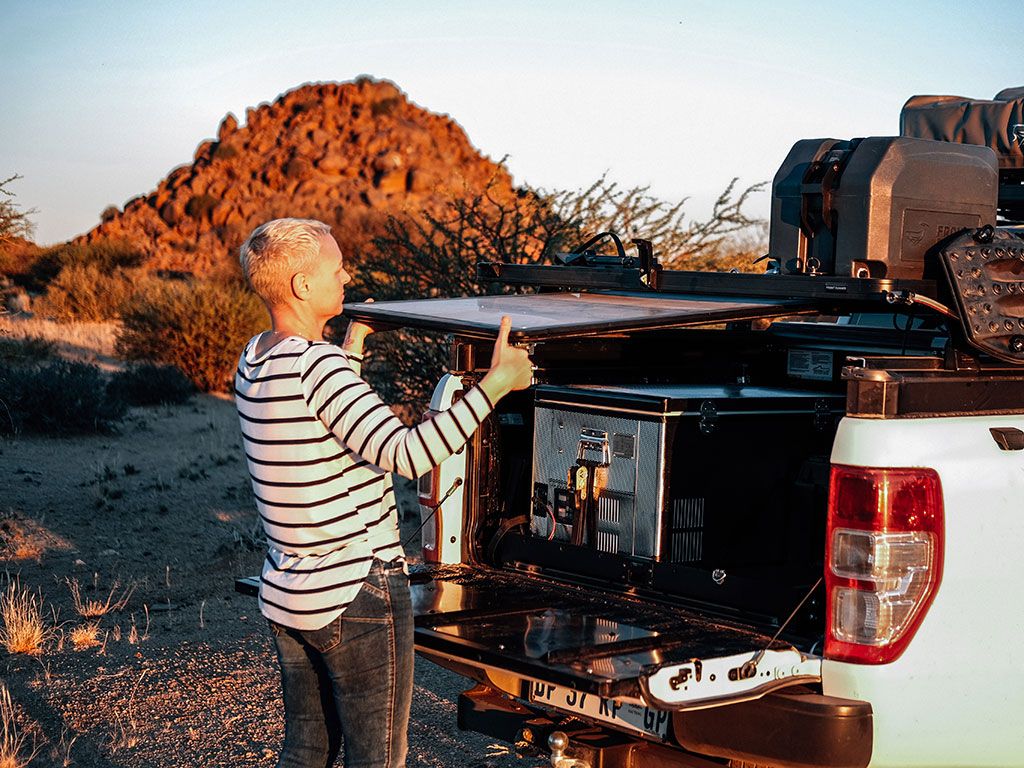 - The brackets can be mounted both parallel and perpendicular to the roof rack’s slats giving the option to access to the table from either the side or rear of the vehicle.