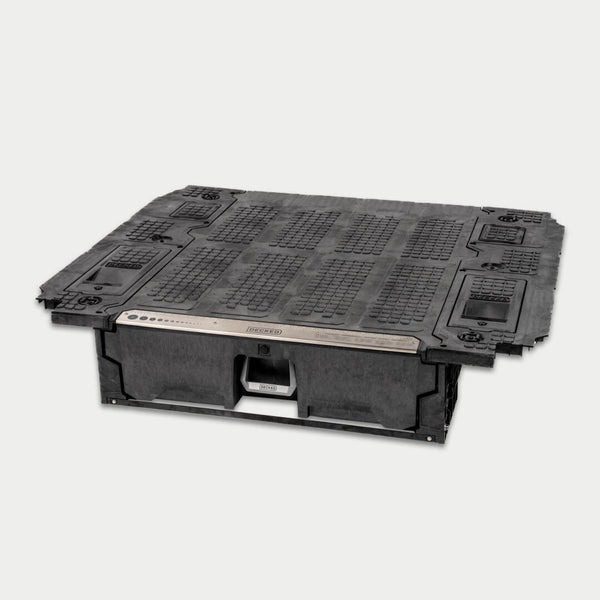 Featuring a highly adaptable single drawer with a massive 180 kg capacity, the DECKED midsize Drawer System combines weatherproof, lockable, ultra-secure storage with a 454 kg payload-rated, D-ring tie-down equipped deck for unparalleled versatility.