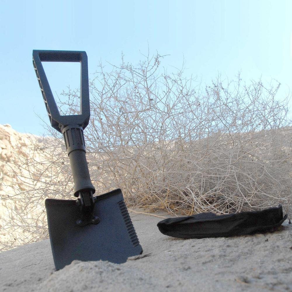 The Recovery Utility Tool (RUT) is a fully functional collapsible Military-Style shovel with easy grip and light handle with carbon steel blade that is heat-treated for high strength and features double serrated edges for easy digging or cutting. The heavy-duty black powder-coated body is 23-1/4″ when open and folds to a mere 9″. It can be stowed easily. Durable storage case included. It’s rugged enough for the toughest of jobs. Never go on the trail without it.