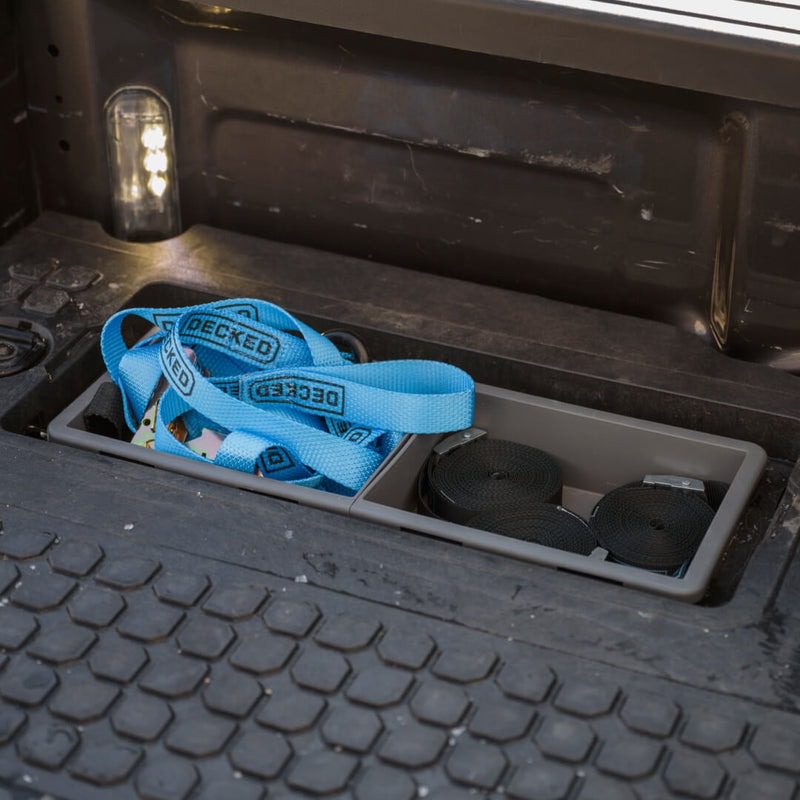 Maximize your truck bed storage capacity with these handy Stash Bins. Available in either deep or shallow styles, they drop into the pass-through access at the deck corners and sit securely beneath lockable lids. Perfect for small “need it now” items – everything from hex wrenches to tape measures to beer. Everyone likes beer.