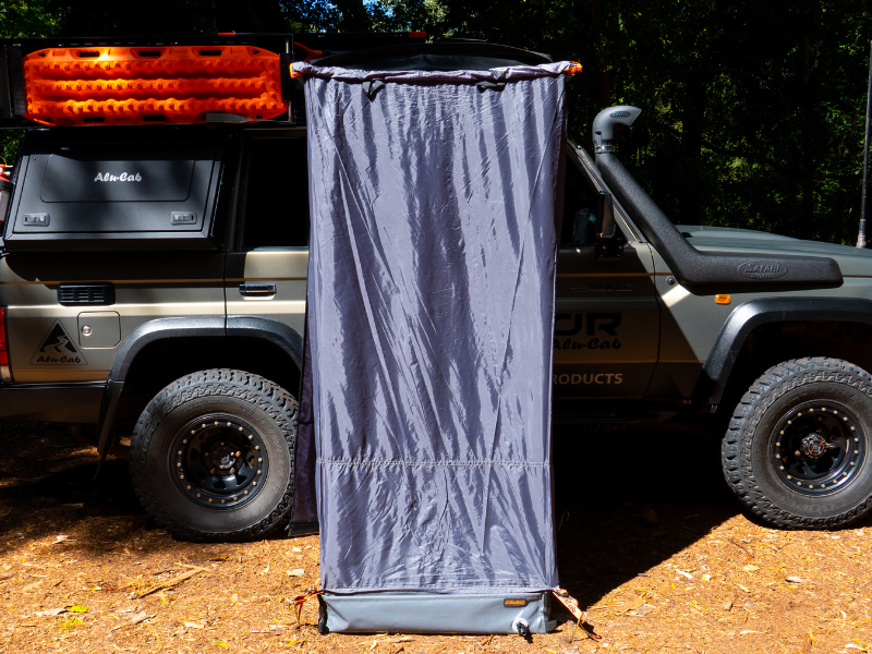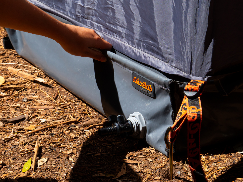 This PVC Shower floor tray, paired with your Alu-cab Shower Cube will make your showering experience during a camping trip, mud free! Has a sturdy frame and prevents immediate leakage into the ground. Can easily dry off after use. Folds up easily and can be stored into the bag, that includes pegs for your convenience to keep in place.