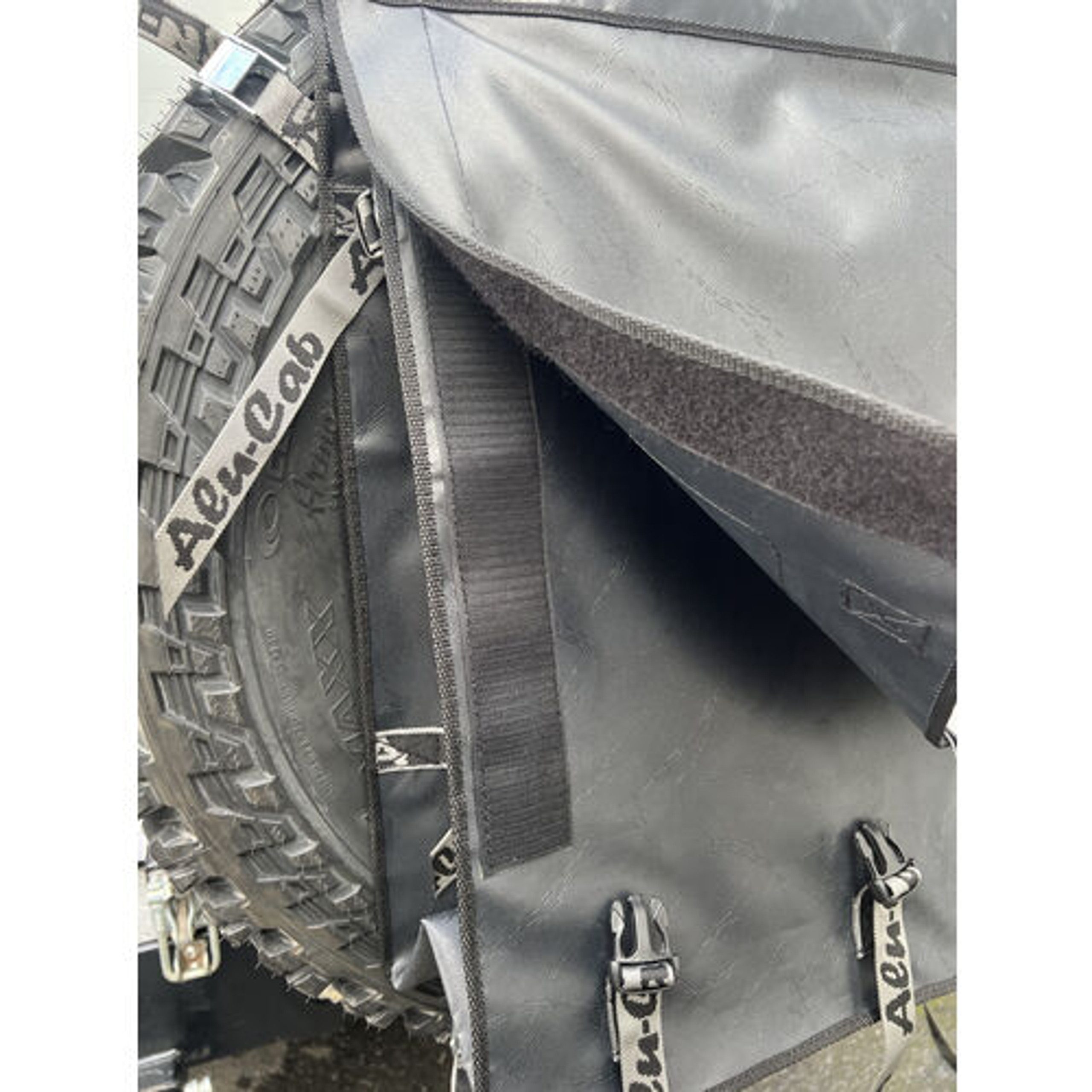 The large Spare Wheel Bag will fit a tire size of up to 35” or can be fitted to an exterior molle plate. The Spare Wheel Bag is made of durable and weather-resistant heavy-duty vinyl. This provides protection against dust, dirt, water, and UV rays. It features a secure closure system of heavy-duty straps, industrial velcro and 3 sturdy buckles. The bag is reinforced with strong stitching together with heavy-duty vinyl and velcro to withstand additional weight. With 3 built-in drainage holes underneath, the bag prevents the accumulation of water or moisture inside the two compartments. The Spare Wheel bag can be adjusted or extended to offer additional storage space when needed.