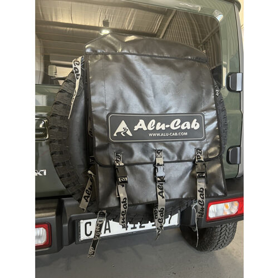 The small Spare Wheel Cover Storage Bag will fit a tire size of up to 28” or can be fitted to an exterior molle plate. The Spare Wheel Bag is made of durable and weather-resistant heavy-duty vinyl. This provides protection against dust, dirt, water, and UV rays. It features a secure closure system of heavy-duty straps, industrial velcro and 3 sturdy buckles. The bag is reinforced with strong stitching together with heavy-duty vinyl and velcro to withstand additional weight. With 3 built-in drainage holes underneath, the bag prevents the accumulation of water or moisture inside the two compartments. The Spare Wheel bag can be adjusted or extended to offer additional storage space when needed.