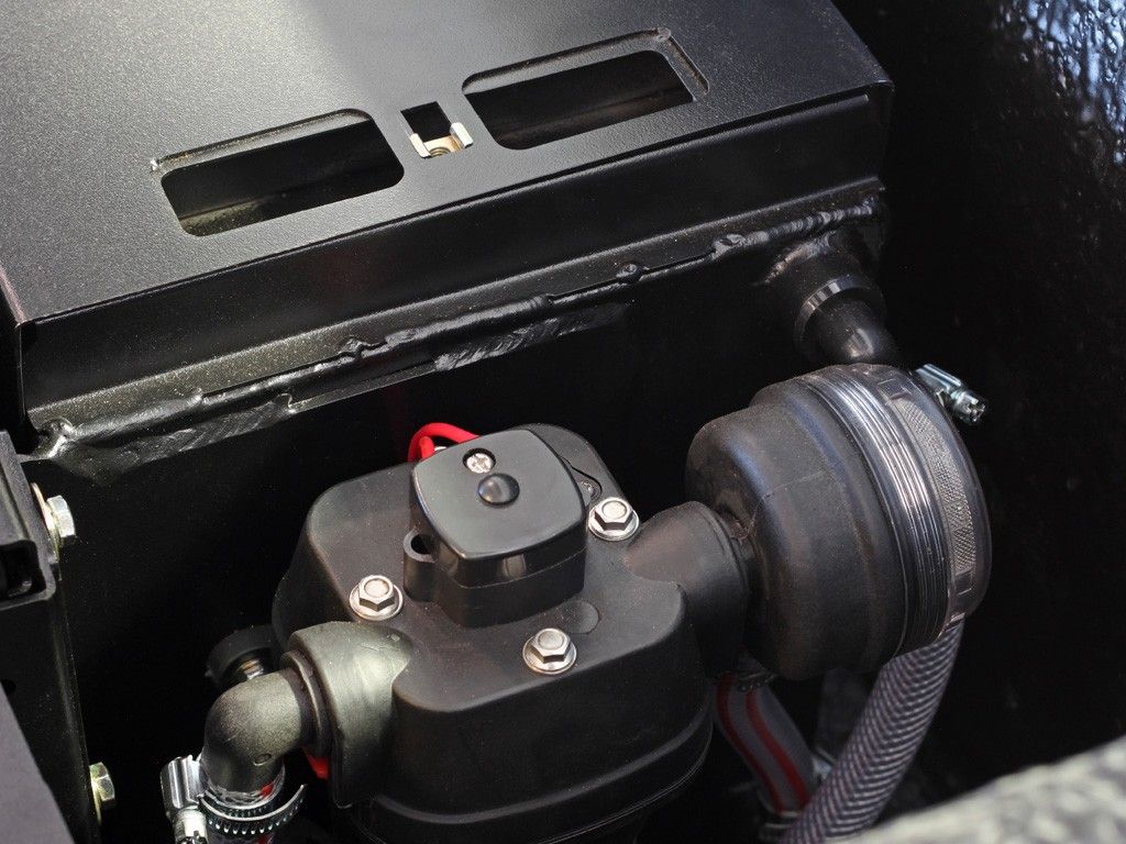 This water tank is placed below the drawer deck to utilize the space between the back of the drawer and the vehicle.