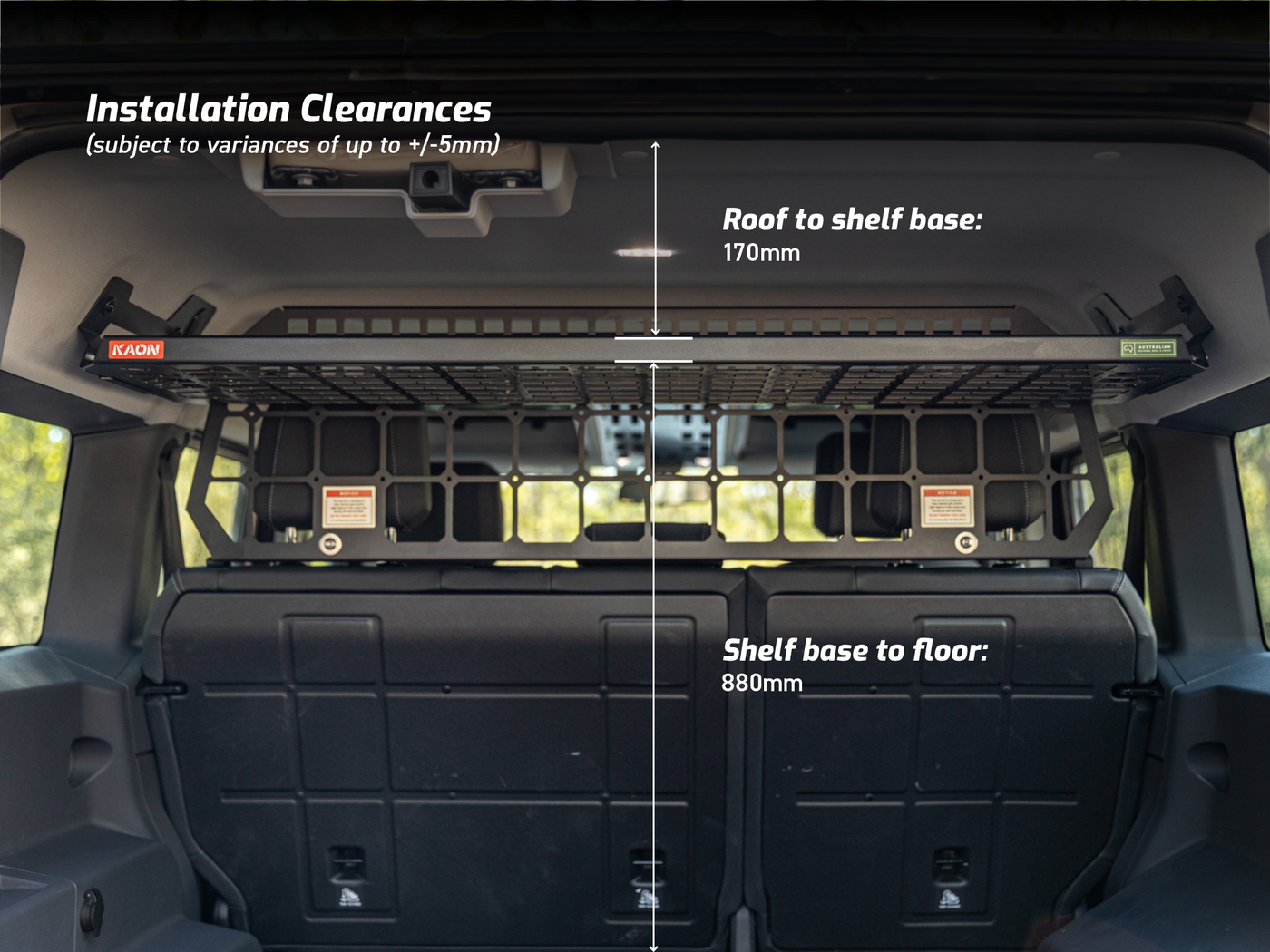 - 1 x Standalone Rear Roof Shelf to suit all Ineos Grenadier Wagon Models