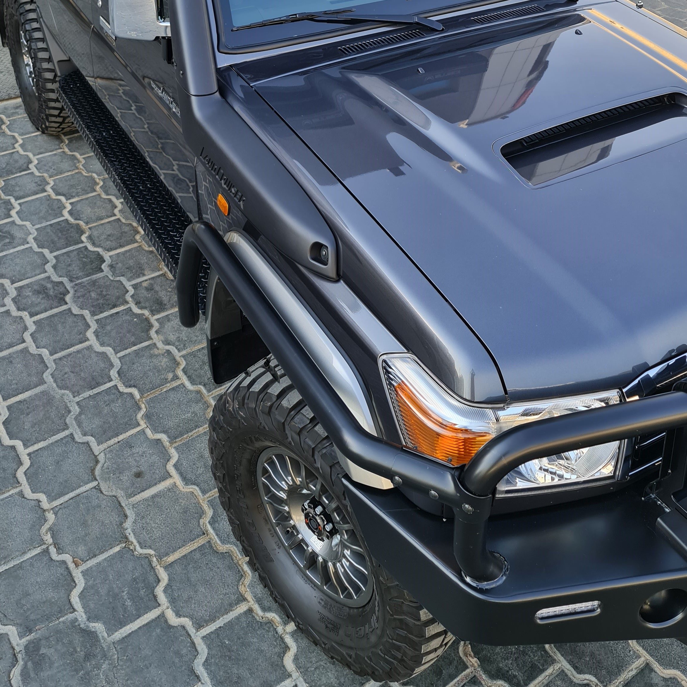 TOYOTA LC79 Upgraded with heavy duty 60.3mm diameter tube, these side steps and rails look tough, perform tough and are tough.