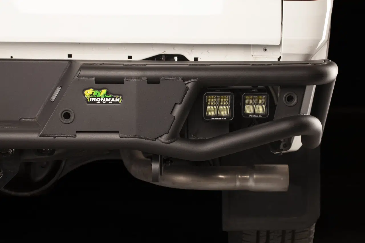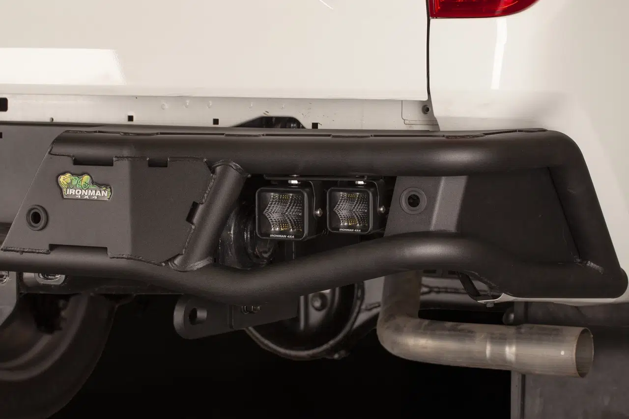 The Raid off-road steel rear bumper comes fully loaded with two frame mounted rated recovery points and four OSRAM chip LED cube lights with up to 4800 lumens. All lights feature a flat, UV-stable polycarbonate lens designed to reduce rain/snow/ice build-up.
