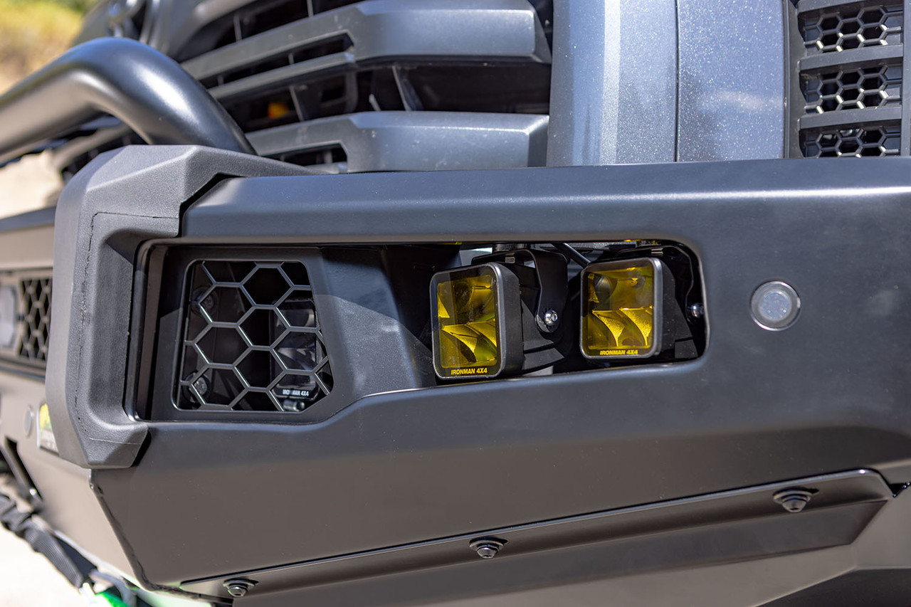 INTEGRATED LIGHTS & MOUNTS: Illuminate your adventures with ease using bumpers equipped with sleek cutouts for cube lights. Tailor your lighting preferences with our LED lights, available in spot or flood beam patterns, and clear or amber lens options to tackle any weather conditions. This bumper also has 4 light tab mounts for additional external lighting such as our Scope Lights.