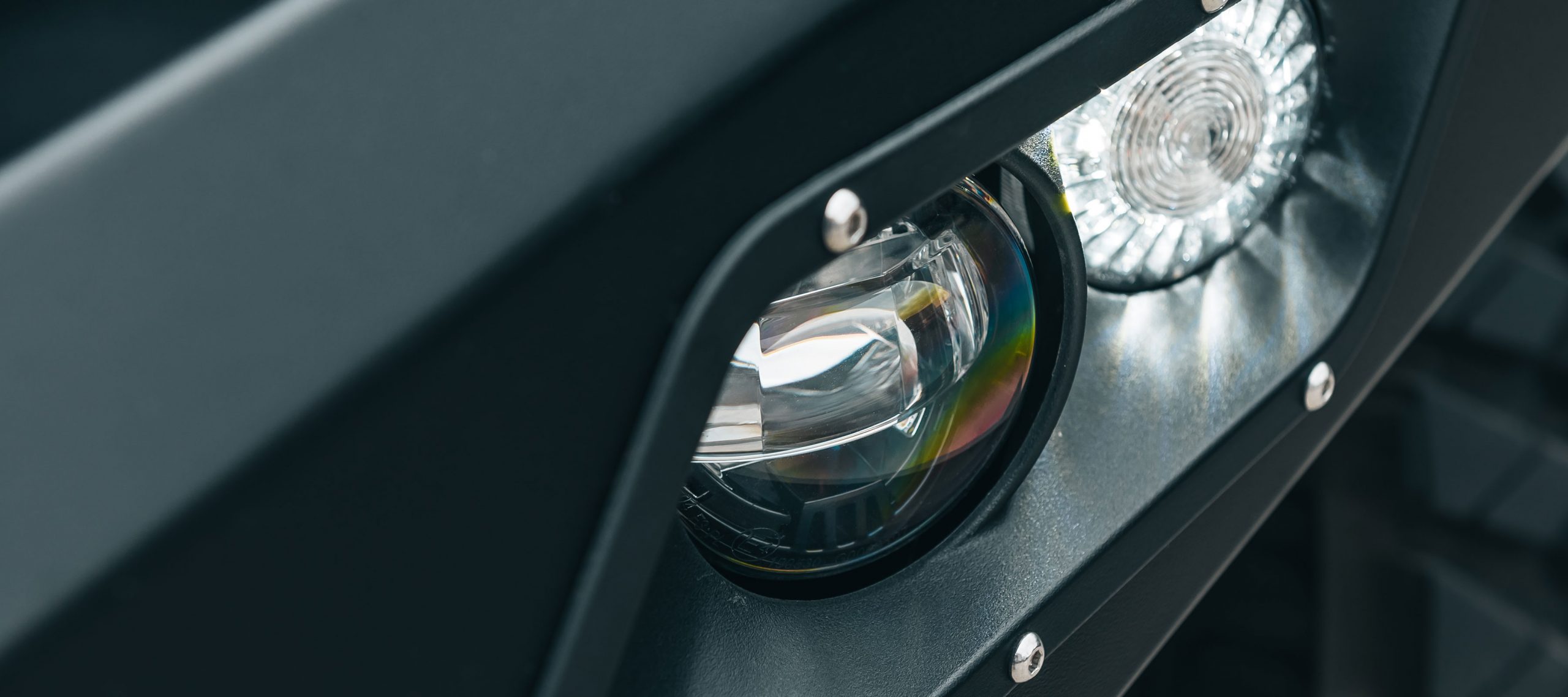 The projector lens optic distributes a very flat and extremely wide pattern which is DOT and ECE standard compliant for road use.