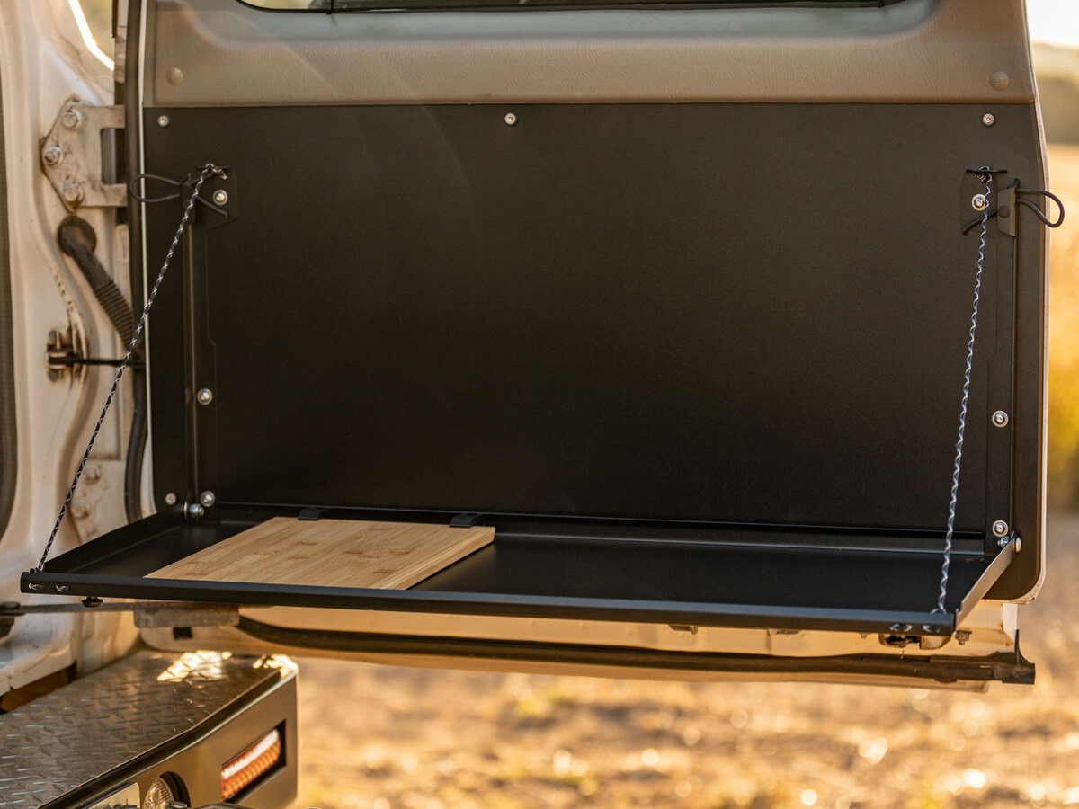 The easiest work and prep surface for life on the road – whether it’s a roadside lunch, a little email catch up, or the ultimate drinks bar at the campsite.