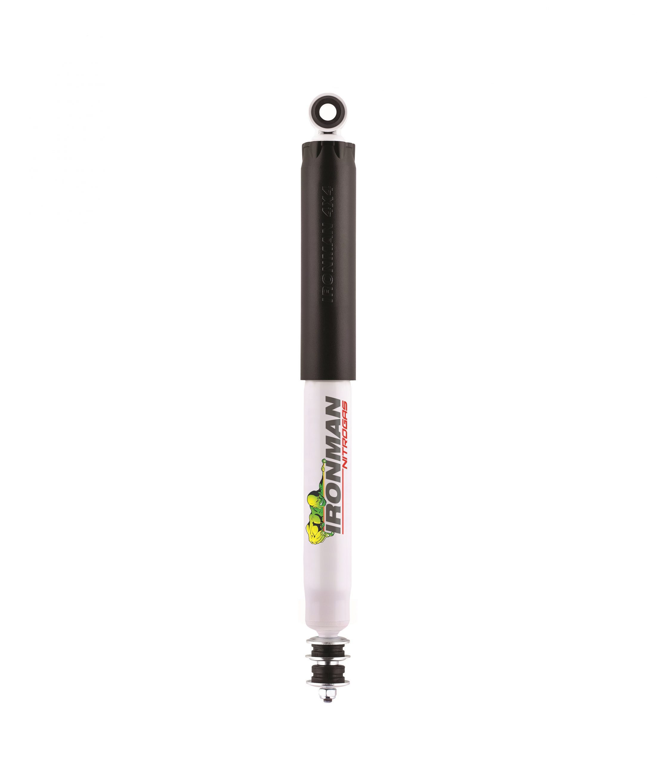 Ironman 35mm bore Nitro Gas Shocks are the rugged all round 4×4 performance shock absorber. Ironman Nitro Gas Shocks provide exceptional performance for both standard and raised height 4×4’s whilst delivering superior ride control and comfort both on and off road. Improve stability when towing or carrying a load. Each and every Ironman shock absorber is force velocity tested before packaging to ensure all parts received are uniform and within operating specification. High quality materials such as German Fuchs High temp shock absorber fluid, Japanese NOK multilip seals are used. Strength and durability requirements are sorted by the use of re-enforced single piece eye rings and stems. Rubber shock absorber bushes are used by Ironman, this is to promote maximum flexibility and reduction in unwanted side load and NVH (Noise Vibration Harshness) transmission which often causes seal failures in other brand shock absorbers using Polyurethane.